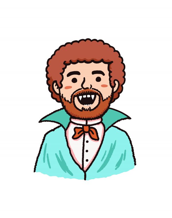 Just in time for Halloween, it’s everyone’s favorite blood sucking artist, Bob Ross! This is an original painting of Bob Ross as a friendly vampire. This fun artwork is perfect for any wall in your home or ready print it on just about anything you can imagine!