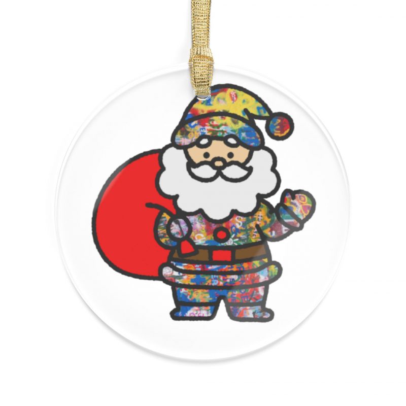 This graffiti art Santa Claus acrylic Christmas tree ornament will add a fun and colorful touch to your holiday decor. This is an Uncivilized exclusive design, making it a unique and fun new holiday tradition! Made of 100% acrylic with vibrant colors and a glossy finish, this ornament includes a gold ribbon for hanging. Perfect for those who love unique and eye-catching Christmas decorations.