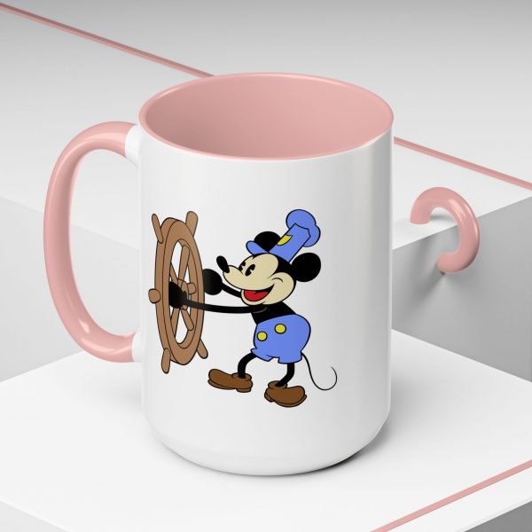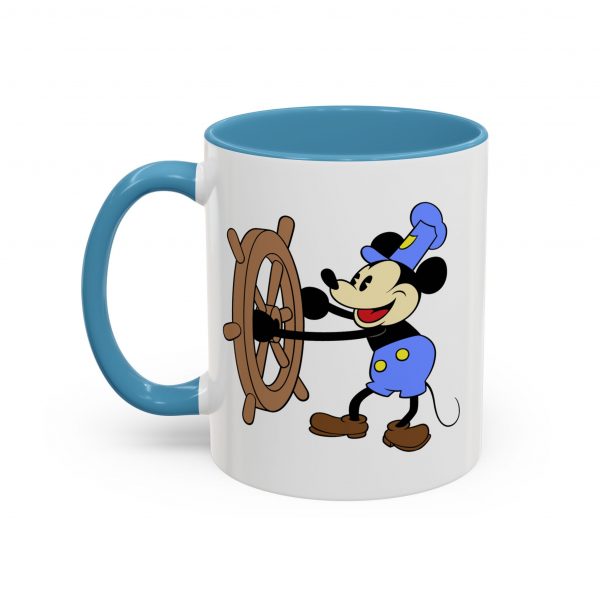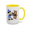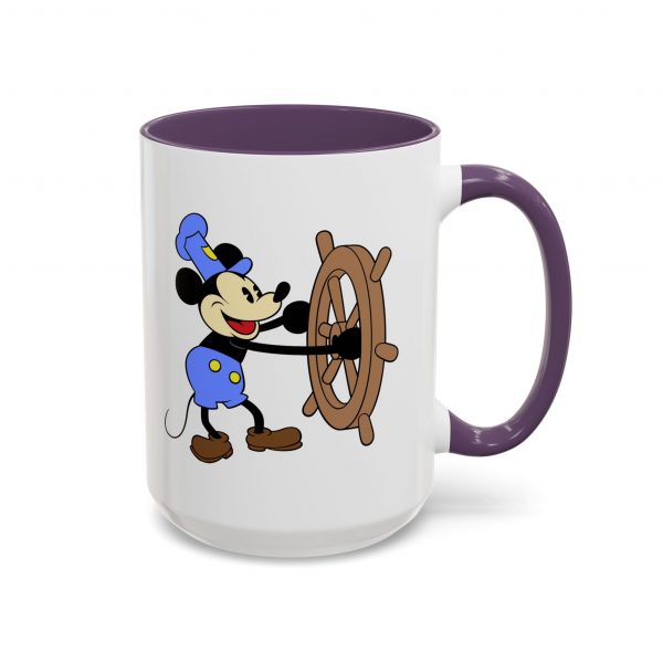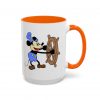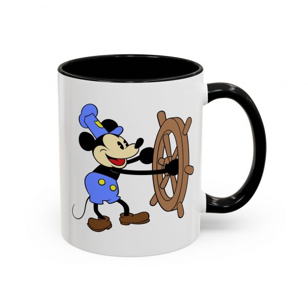 Vintage Disney Mickey Mouse Steamboat Willie Colorful Coffee Mug – a wonderful gift for Disney fans! This unique cup features a double sided Mickey design and fun, colorful accents to the handle and interior.